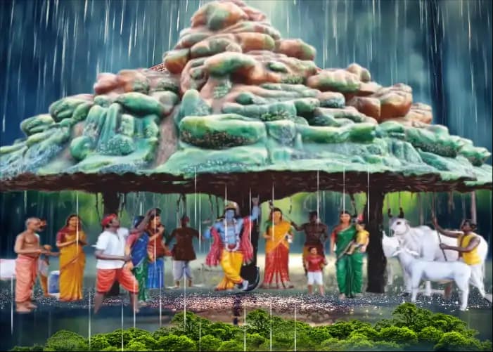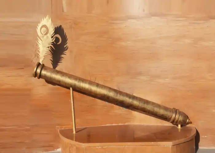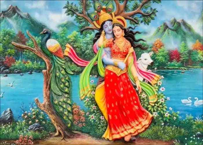 Here, devotees experience love and devotion while witnessing the divine form of Lord Krishna's beloved flute on this Love mountain, a symbol of love. Seeing Lord Krishna playing the flute is itself a deeply blissful experience for the devotees. It is said that when Lord Krishna played His flute in Vrindavan, the trees, plants, animals, birds, and all people would lose themselves in its sweet melody. It would feel as if nature itself were swaying to the tune of His flute. According to a famous legend, Lord Krishna would communicate with Radha Ji through the sweet sound of His flute, a message that only Radha Ji could understand.