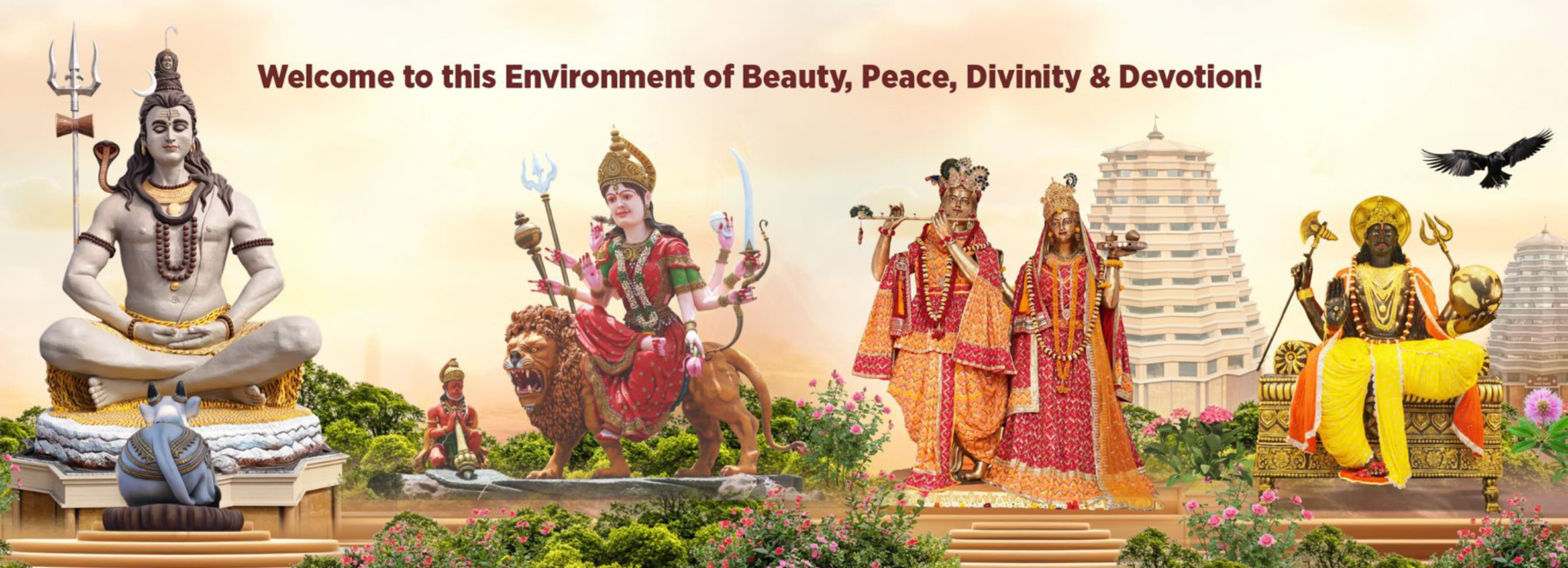 The Chaar Dham is heavenly abode of Goddess Maa Vaishno Devi, Lord Shiv, Lord Radha-Krishna, and Lord Shani on the pious land of Vrindavan, UP, India. The Chaar Dham is a place of worship, spirituality, and culture dedicated to promoting holiness and harmony.